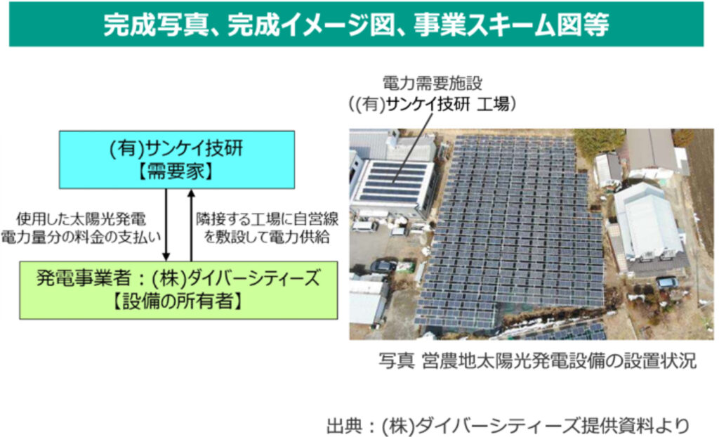 | 方式 | 工場隣地の農地を使用し、自営線により供給するPPA方式 |